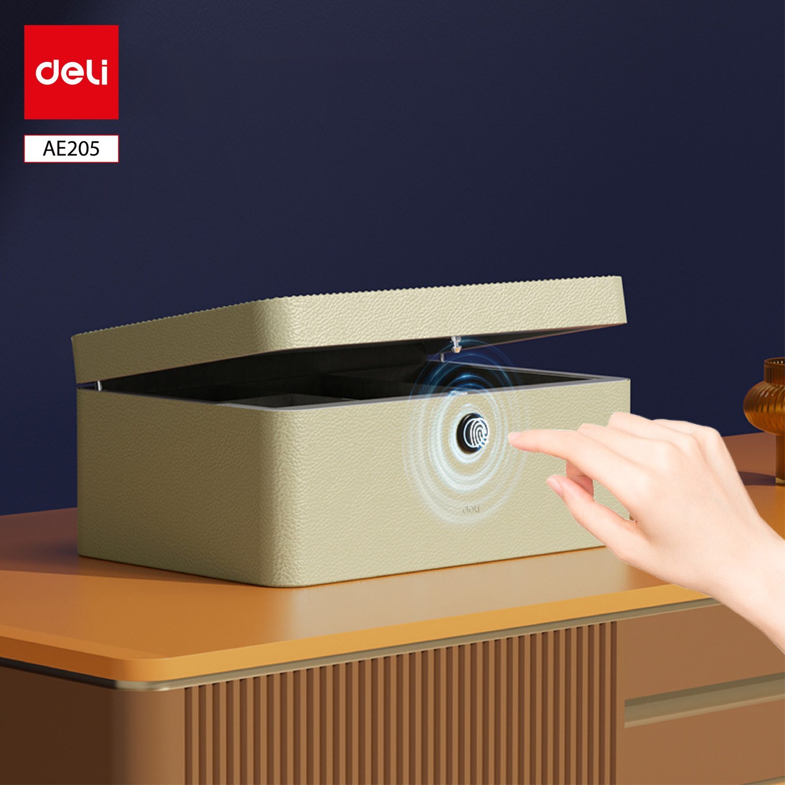 ديلي صندوق مجوهرات جلدي مبطن – قفل بصمة – 220 – أبيض / كحلي – AE205
