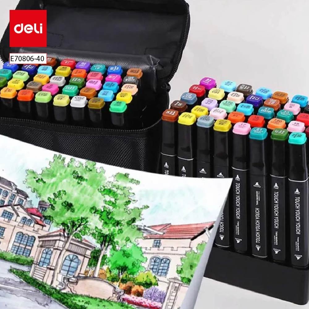 ديلي مجموعة أقلام رسم احترافية – مزدوجة الرأس – مع حقيبة – 40 لون – E70806-40